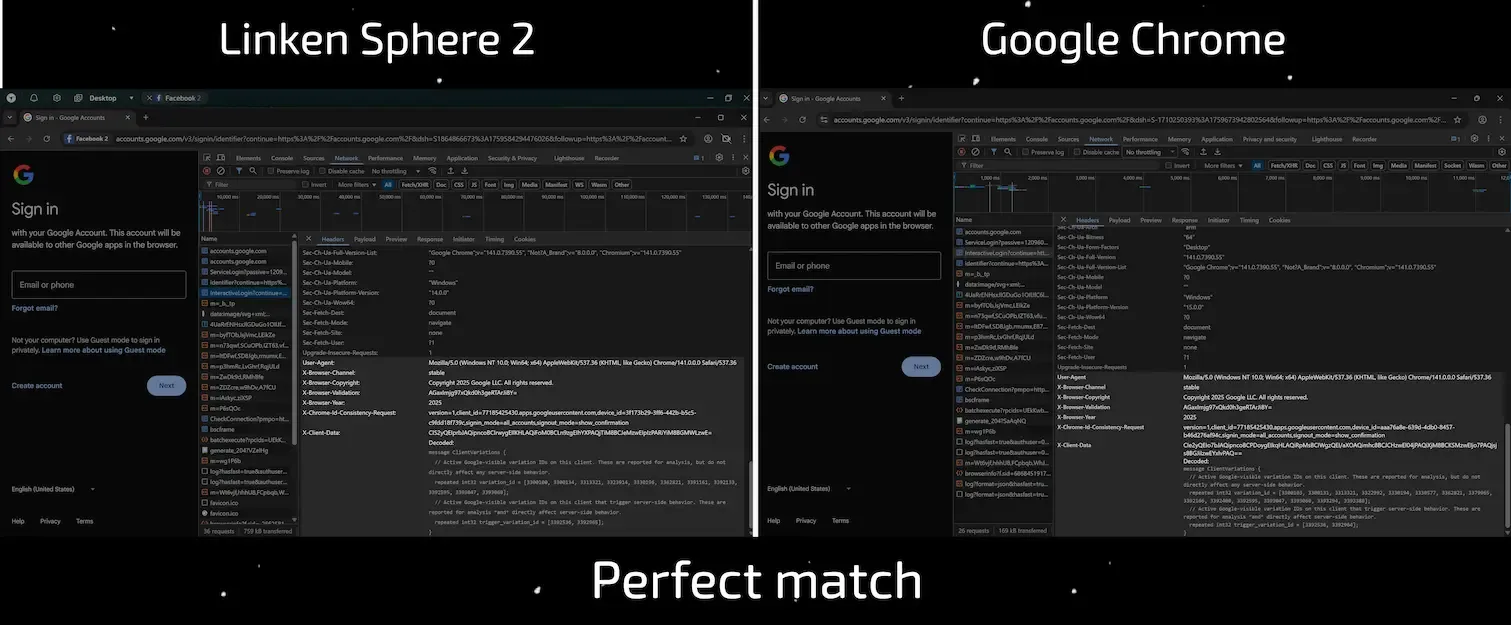 In this article, we’ll explain how this new tracking mechanism works. First, we’ll take a detailed look at the content and purpose of the key headers — from the X-Browser-* family to the critically important X-Client-Data and X-Chrome-Id-Consistency-Request — explaining exactly how they enable Google to distinguish a real user from an antidetect. Then we’ll present the results of our extensive research, showing without embellishment how leading antidetect browsers handle (or more often fail to handle) this new threat. If you’re already familiar with the theory, you can skip straight to our research results.