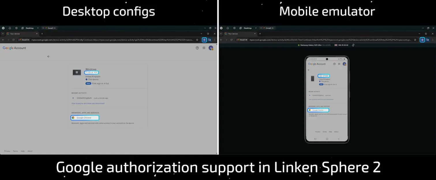 Instead of patching vulnerabilities, Linken Sphere solves the problem at its core — reconstructing a coherent, logically connected browser ecosystem. From accurate X-Client-Data generation to native Google authorization integration, every aspect works in synergy to create a truly believable and lifelike digital identity.