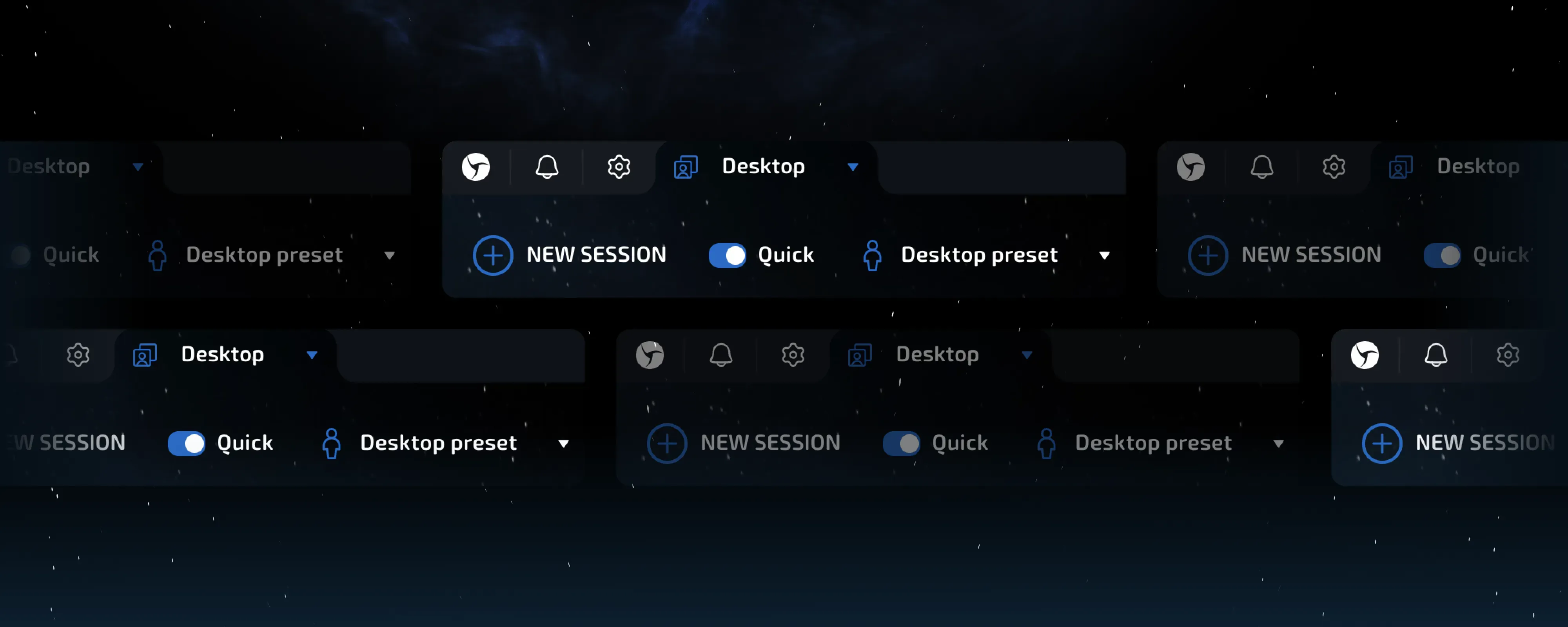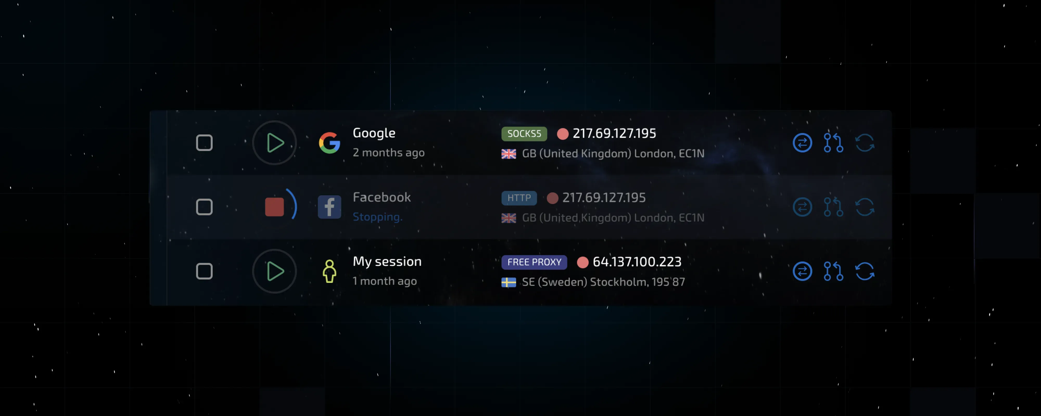 In the previous generation, we introduced an advanced feedback system for session actions, which you’re familiar with. Depending on the selected operation mode, the session launch icon changed to indicate warming up or automation. The launch itself was also accompanied by animation. Now we’ve expanded the feedback, adding descriptions of the actions being performed during session start and stop, proxy setup, or connection checks.