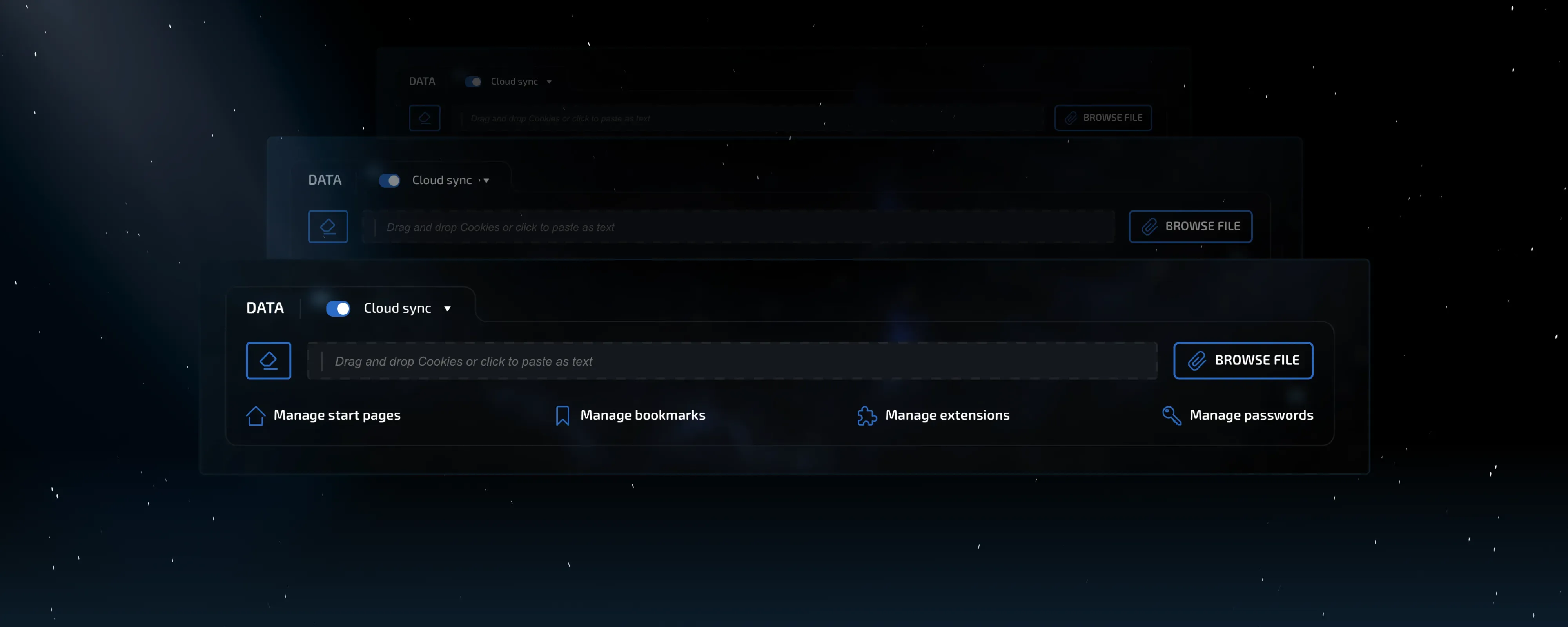 Data: Similar to the provider, the basic synchronization settings are now located at the top of the block. With the product’s development, new synchronization types have been added, such as separate settings for extension storage. Placing toggles in a single row neither improved convenience nor visual simplicity. Moreover, to disable synchronization, for example, a user previously needed to make at least six clicks. Now, synchronization can be disabled with just one.