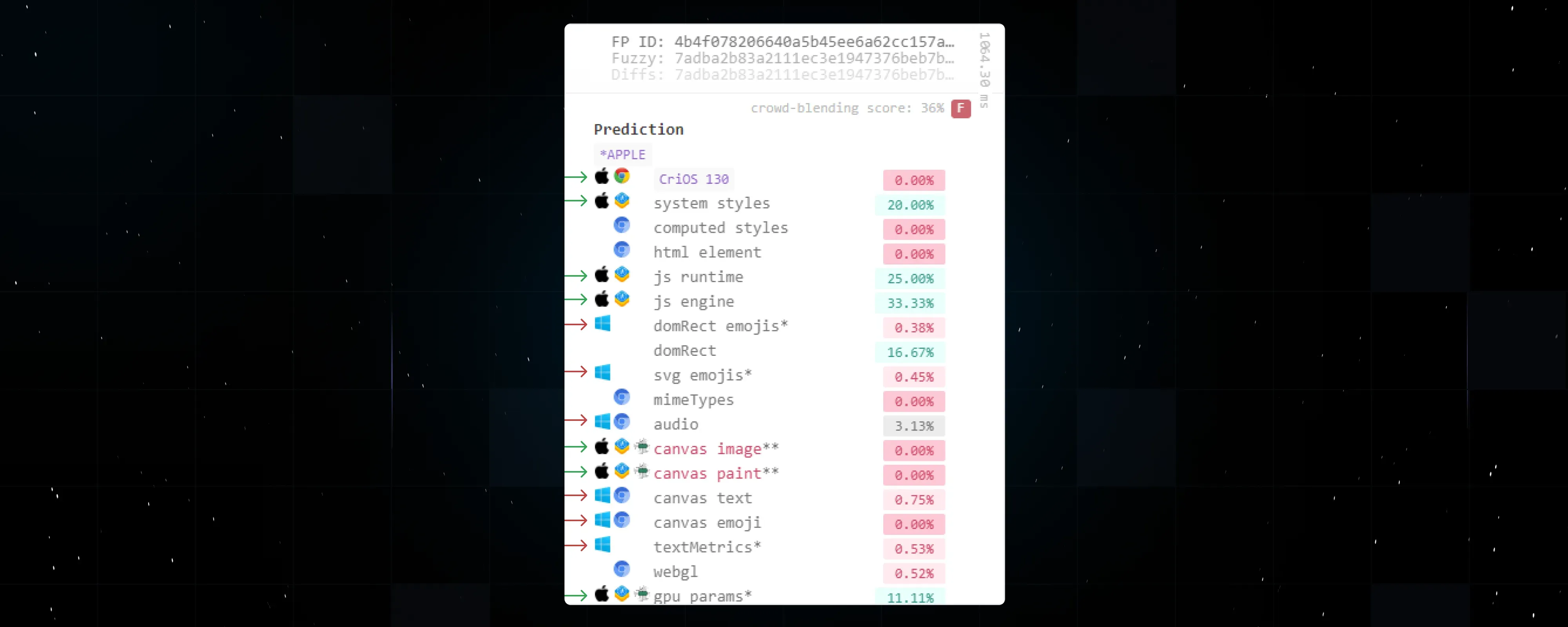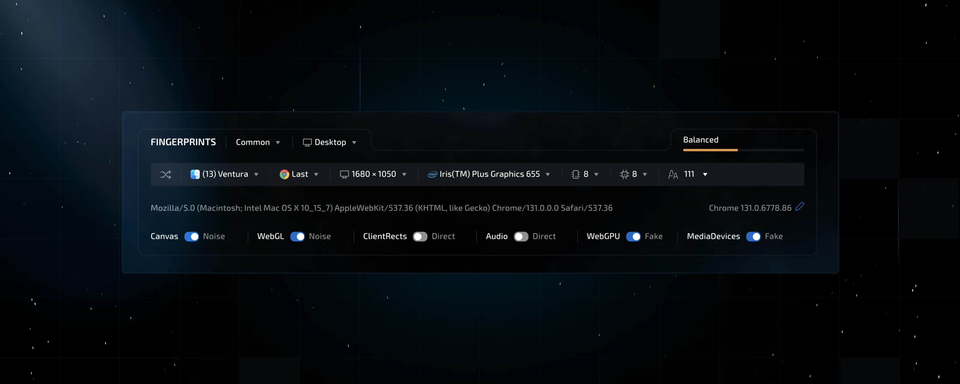 A year and a half ago, working on the first version of the hybrid, we were limited by the number of substitutions used for fingerprint uniqueness since the hybrid must not contain anything that can be detected by site testing. Therefore, to maintain the purity of the generated fingerprints, we used all possible means available at that time.