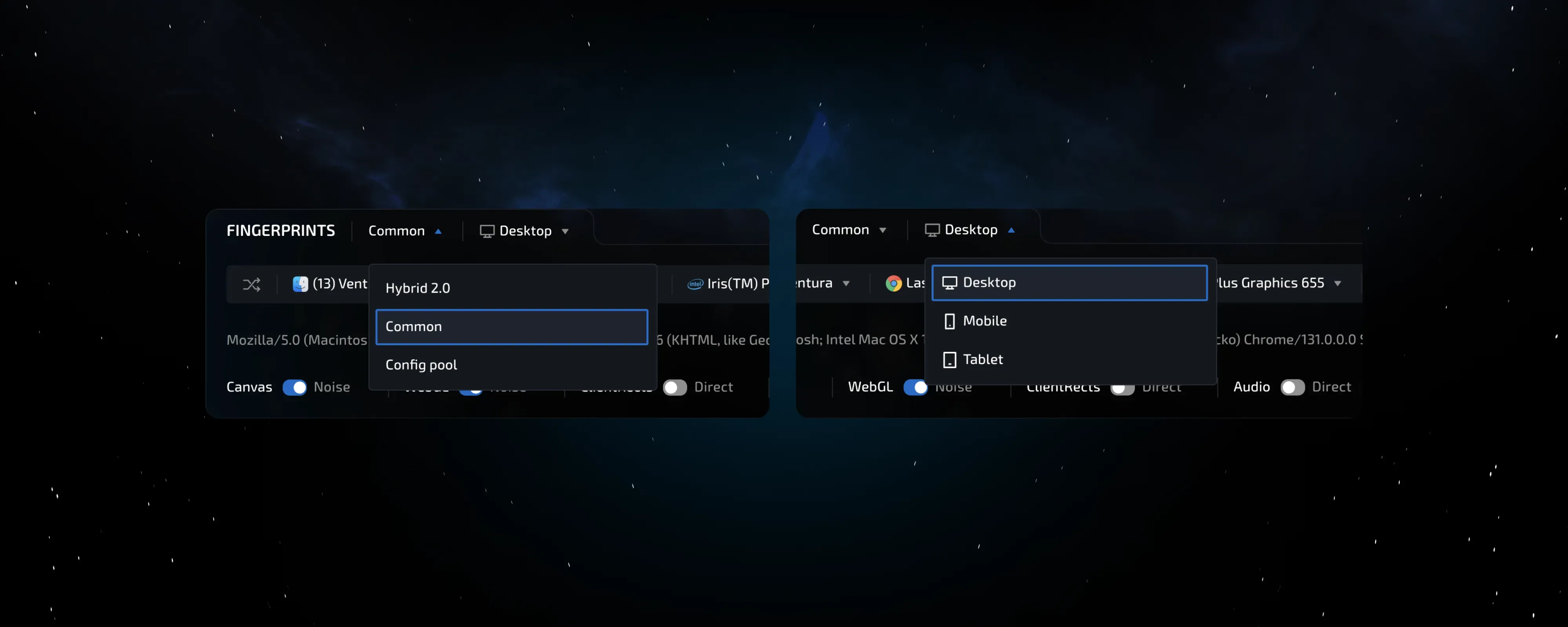 What is a real configuration? It’s the combination of correct parameters of real computers, where mutually exclusive hardware characteristics cannot coexist. Modern configurators in high-quality antidetect browsers handle this task fairly well in most cases. However, there can be errors that result in implausible parameter combinations.