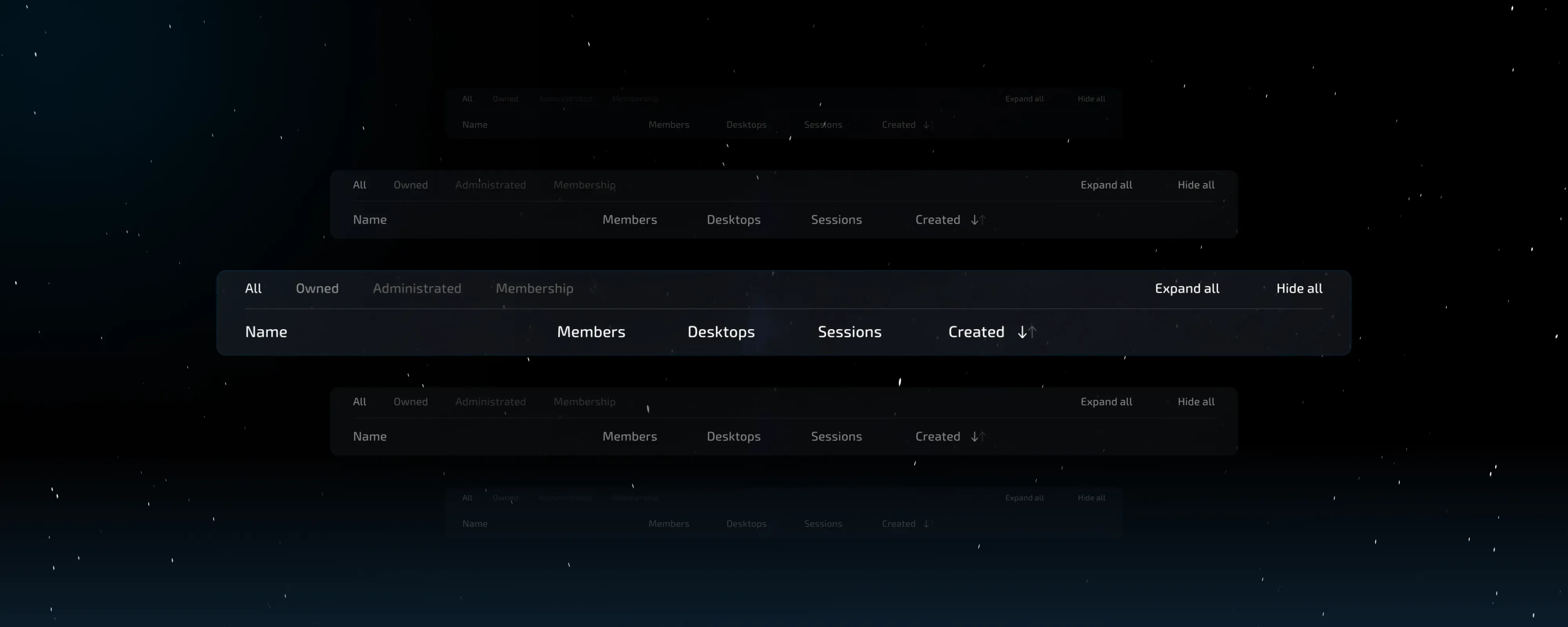 We integrated the search bar between the functional buttons, reduced the button labels to free up additional space, and enlarged them for greater convenience. The button for opening the tags panel logically took a prominent position near the other important control elements. As a result, session rows became larger without reducing the number of rows displayed on the page.
