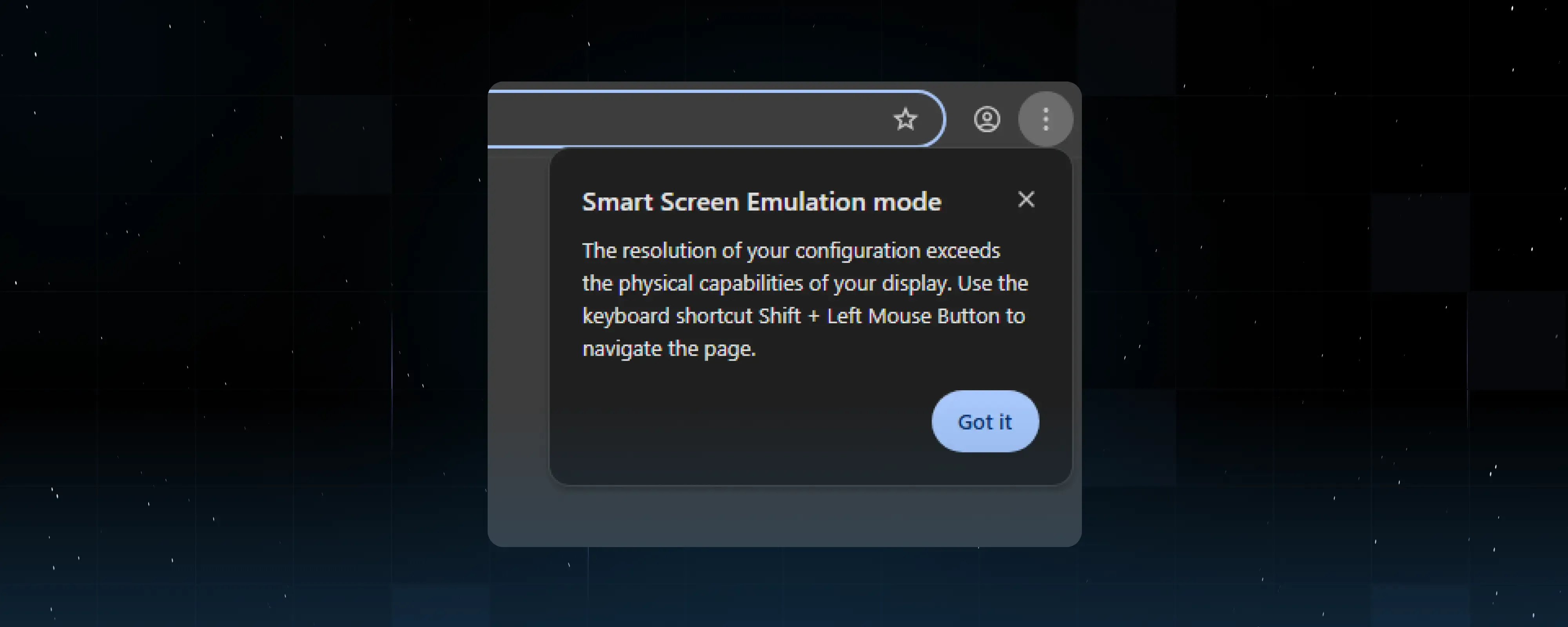 We needed to solve this issue, and we did. In smart window management mode, you now have the option to enable a smart screen emulation system. This entirely new mechanic may initially feel unfamiliar but allows the substitution of any screen resolution without the website being able to detect it. Regardless of your physical screen size, you get a virtual monitor with the correct resolution, navigable using assigned key combinations.