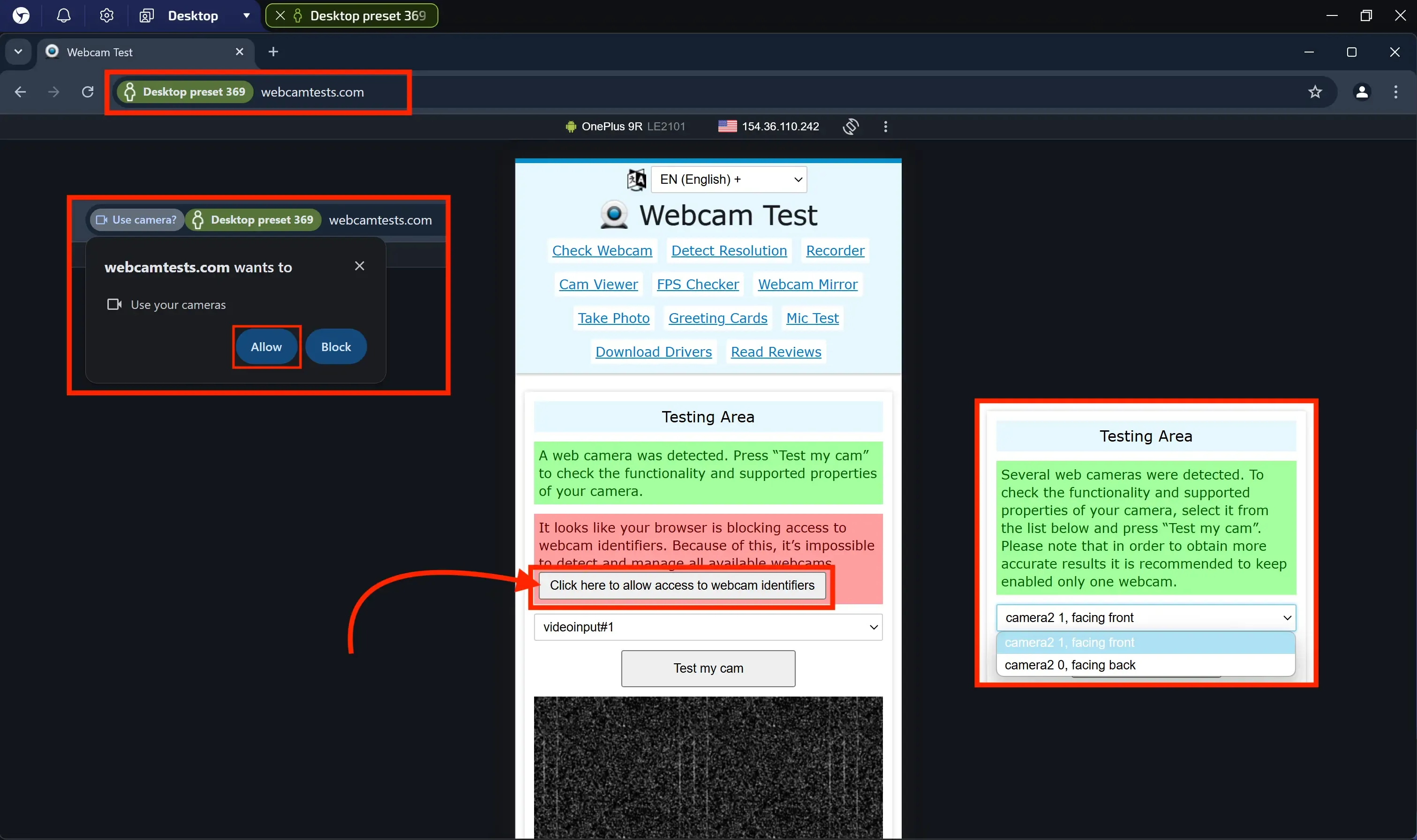 Click the button "Click here to allow access to webcam identifiers"