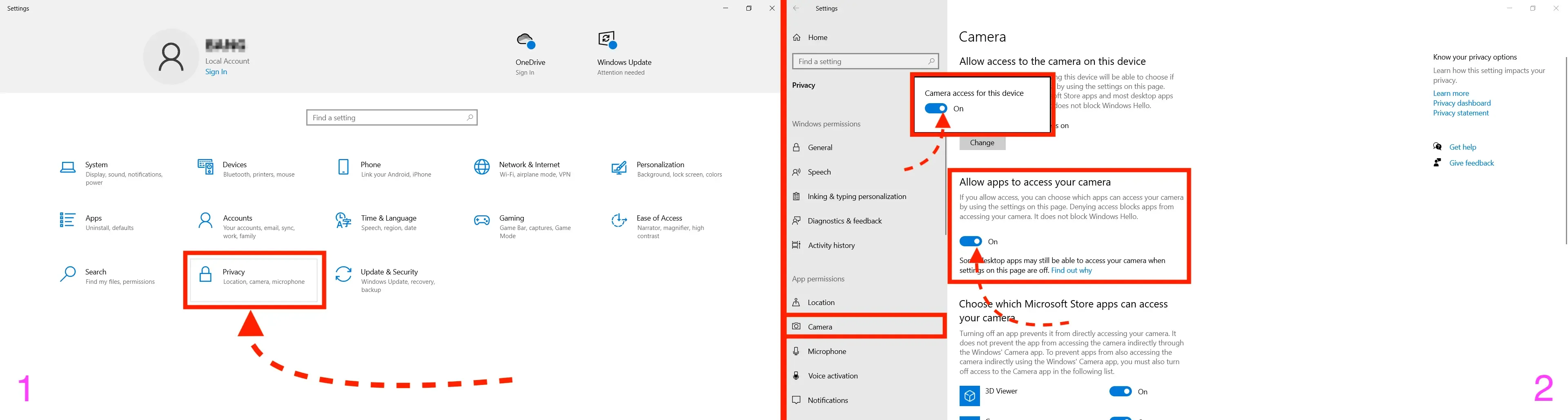 Configuring Camera Access in Windows