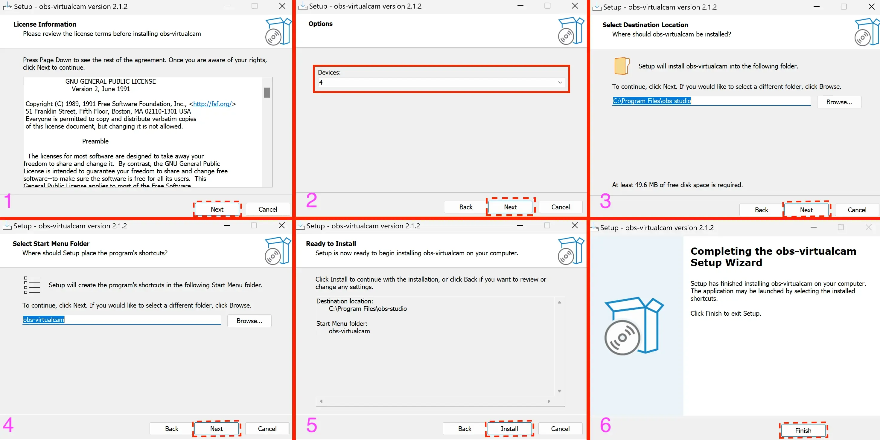Install the plugin as shown in the screenshots above. On the second step, select 4 devices; otherwise, keep the default settings.