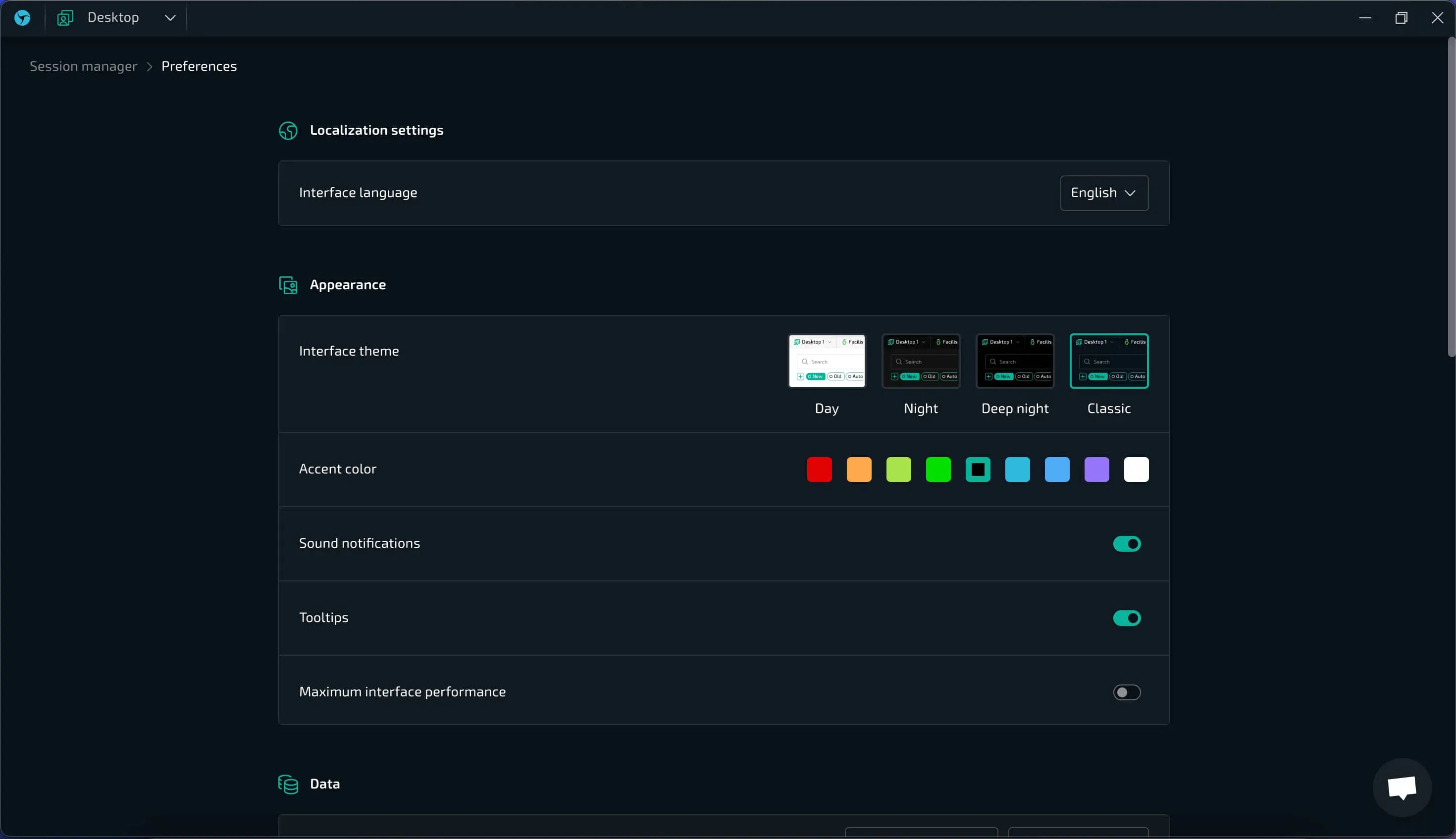 Для нас важна эстетика. А предпочтения в дизайне являются сугубо индивидуальными особенностями. Поэтому мы не ограничивались темной и светлой темой, а сделали целый ряд возможных комбинаций настроек интерфейса, чтобы вы могли подобрать оптимальный для себя внешний вид программы. На данный момент представлено четыре темы интерфейса и девять акцентных (активные кнопки) цветов.