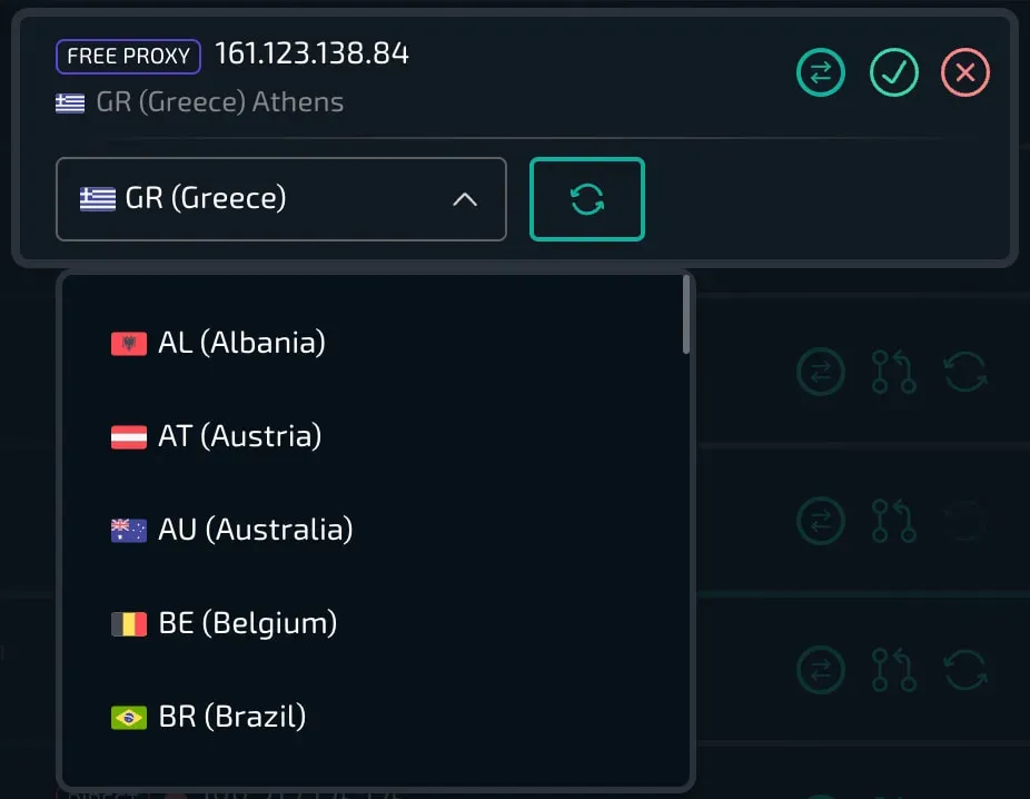 Вы можете устанавливать необходимую локацию для бесплатных прокси даже не покидая управляющую панель.